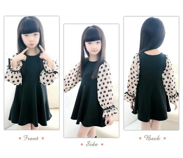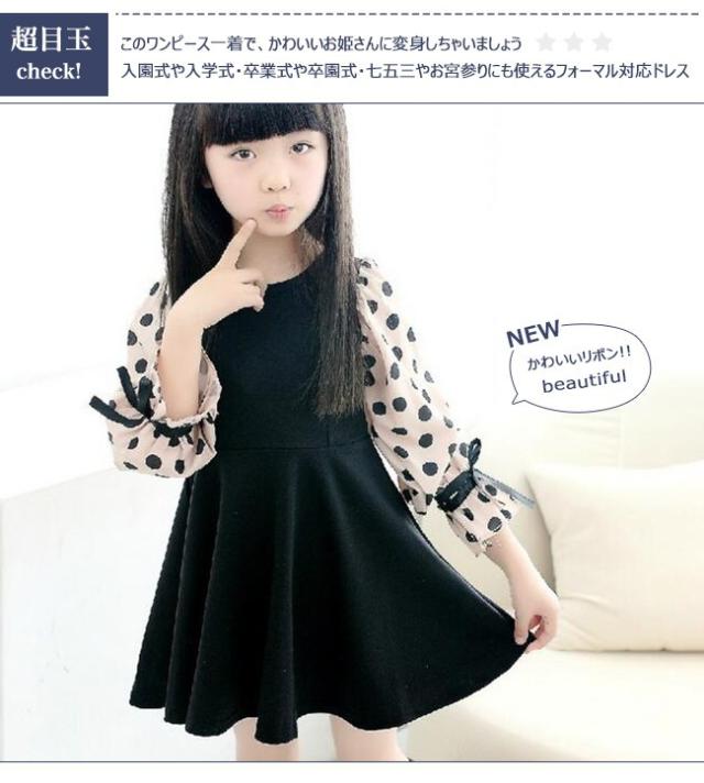 即納 ワンピース 女の子 子供 キッズ ドット柄 シフォン袖 フォーマルワンピース 長袖 子供ワンピース キッズドレス ジュニア 結婚式