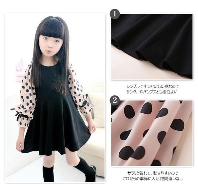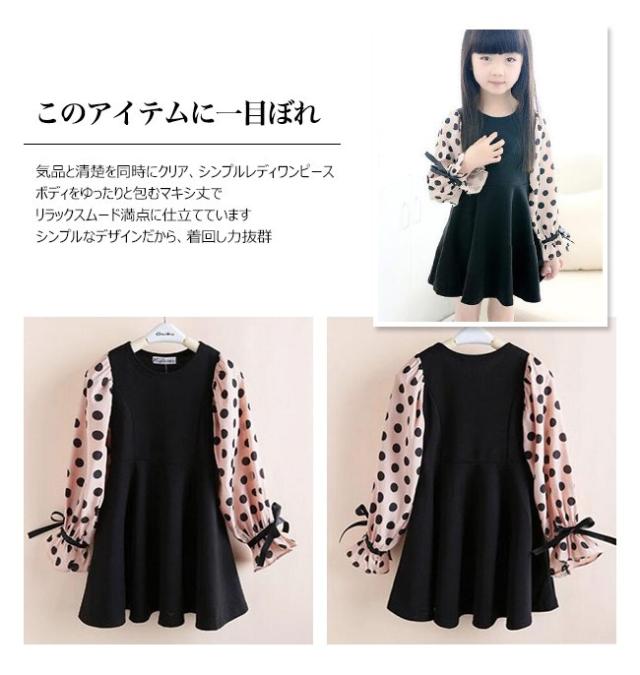 ワンピース 女の子 子供 キッズ ドット柄 シフォン袖 フォーマルワンピース 長袖 子供ワンピース キッズドレス 子供服 ジュニア 結婚式 発表会 入園 卒業式