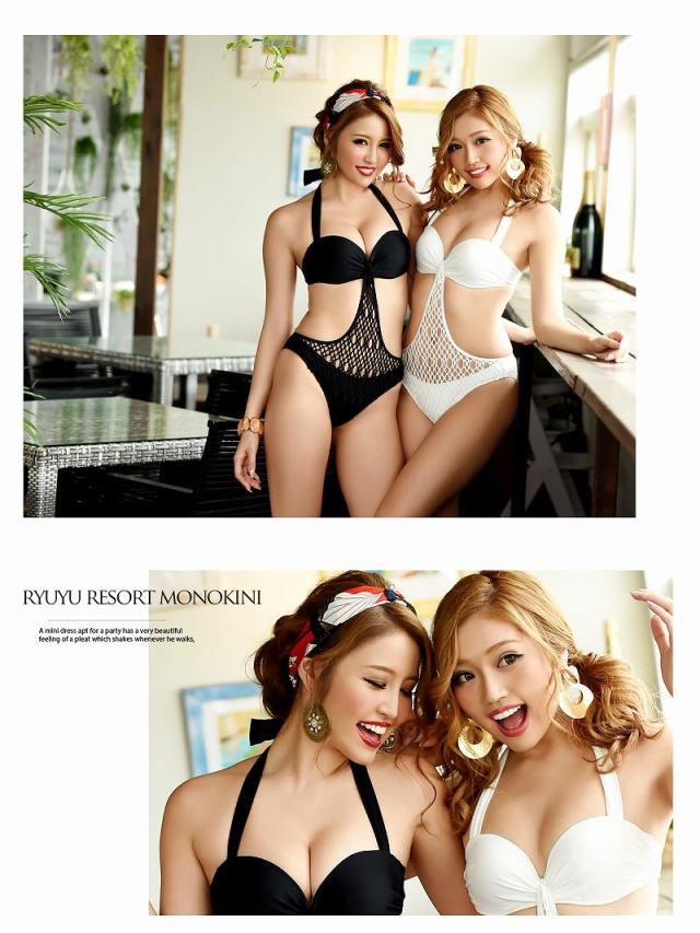 水着 モノキニ ワンピース ルターネック 単色 Ryuyu リューユ クロシェレース カットアウト ワンピース 水着 S M ブラック ホワイト 白 黒 無地 *504839