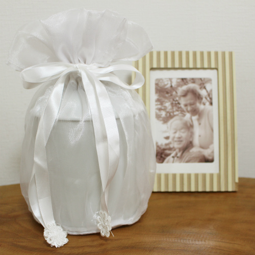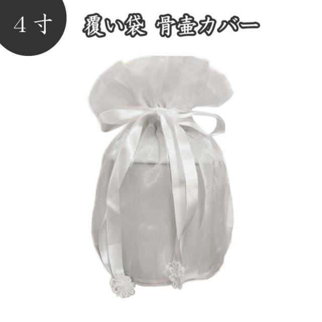 【 骨袋 骨壷カバー 】【 覆い袋のみ 】 骨壷用 覆い袋( 骨壷袋 ) オーガンジー ホワイト 4寸 仏壇 骨壷 骨壺 49日 後飾り お悔やみ 供養 犬 猫 ペット供養にも かわいい