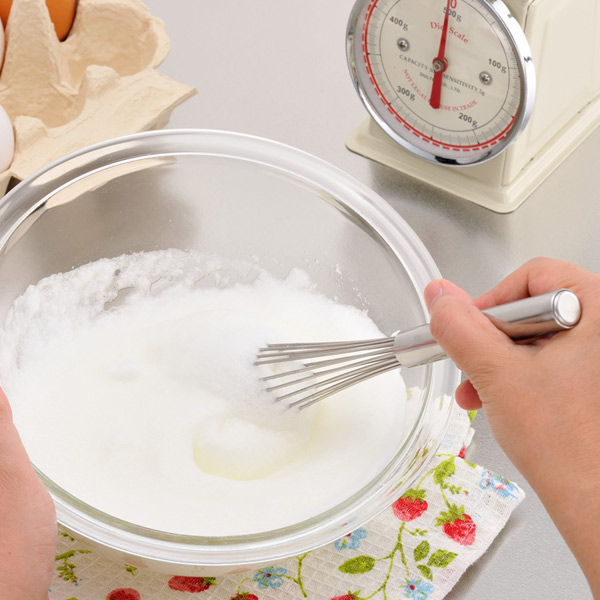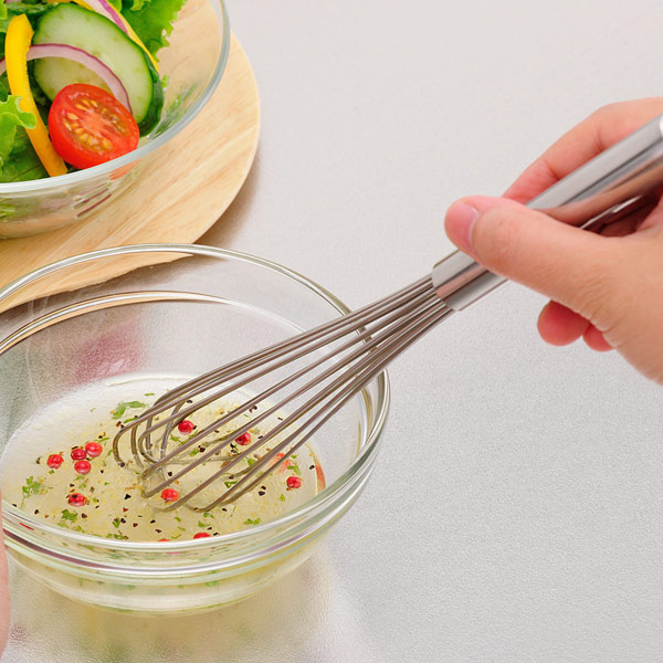 かさばりがちな泡だて器がすっきりスリムになりました。コンパクトながらも16本の線材を使用しているので、素早く泡立てることができます。