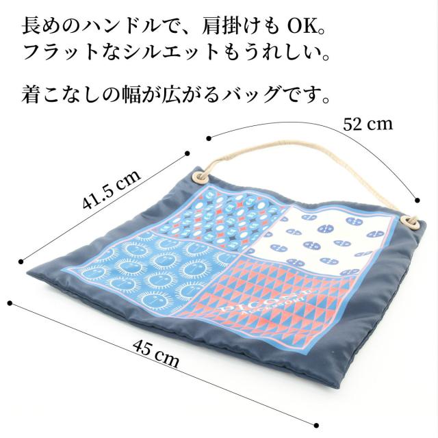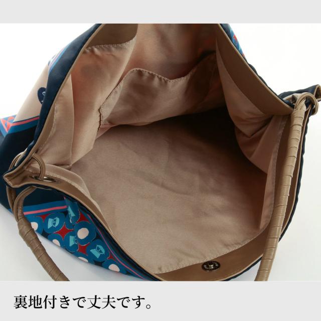 | 商品紹介 | 毎シーズン柄が増えている、人気のスカーフ柄バッグ。いくつ持ってもたのしい、ファッションに合わせて使えるバッグです。肩から掛けてすっきり持てるデザインです。 | |||||