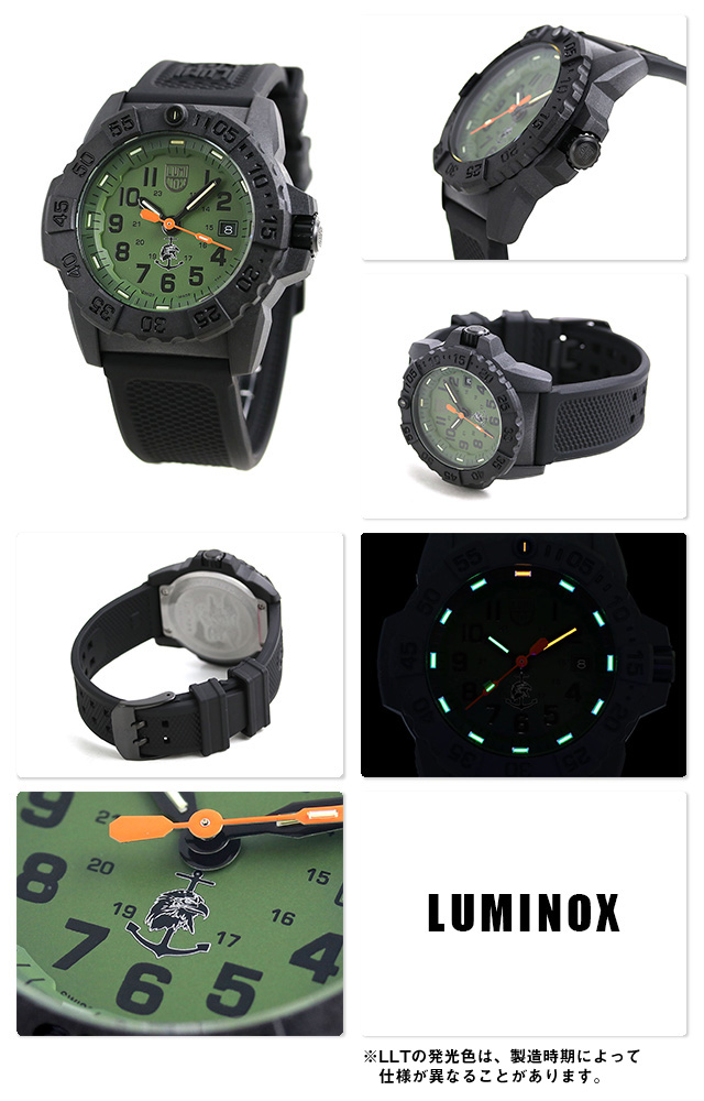 7年保証キャンペーン ルミノックス ネイビー シールズ 3500 シリーズ 45mm スイス製 クオーツ メンズ 腕時計 l3517-NQ-SET LUMINOX NAVY SEAL 3500 SERIES アナログ グリーン×ブラック ◆LUMINOX(ルミノックス)は1989年に創業。高性能なスポーツラインを展開しており、ラテン語で「明るい夜」を意味するブランド名を掲げているように、最先端の発光と視認性の良さを特徴としています。極限の状況下で行われるミッションで必要となる視認性を確保しているルミノックス時計は、特殊軍用時計として絶対的な信頼感を得ています。 海軍部隊「Navy SEALs」のニーズをうけて誕生した、海軍による承認を冠するモデル。3517.NQ.SETの「NQ」は、ネイビーシリーズのスローガンの”NEVER QUIT”(決して諦めない)を意味する。ハクトウ鷲と錨を組み合わせたアメリカ海軍のシンボルマークが6時位置にデザインされている。替えベルト付きなのでスタイルに合わせて変更できます。※LLTの発光色は、製造時期によって仕様が異なることがあります。予めご了承ください。