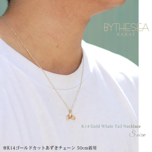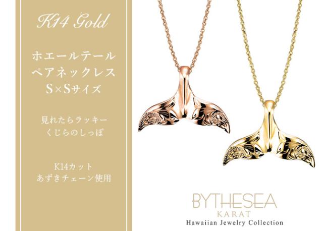 ゴールド ネックレス ハワイアンジュエリー ネックレス ホエールテール ゴールド ペアネックレス 2本セット Sサイズ 刻印 無料 誕生石入れ可 14K K14ゴールド 14k k14カットあずきチェーン太0.9mm 2本セット カップル 夫婦 プレゼント クリスマス 【品番:CG-GP114P-CH123】