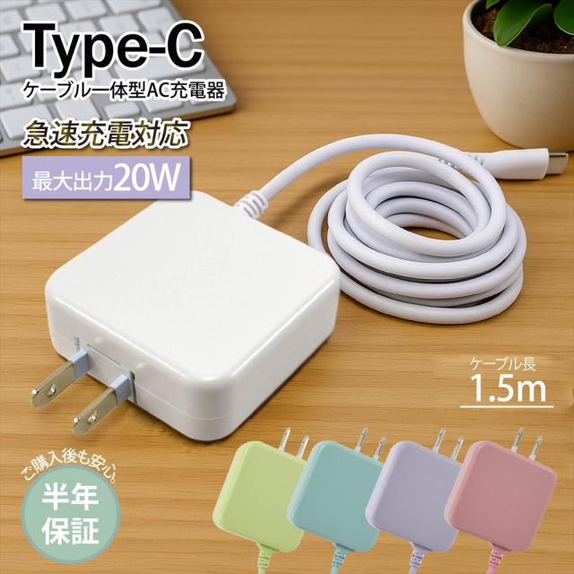 Type-C 充電器 ケーブル 一体型 AC充電器 急速充電 JX-AC-135B iPhone17 iPhone16 ACアダプター 1.5m スマホ タブレット AC コンセント 持ち運び タイプc 最大20W 折りたたみ プラグ PSE 家庭用コンセント 【PSE認証済み】