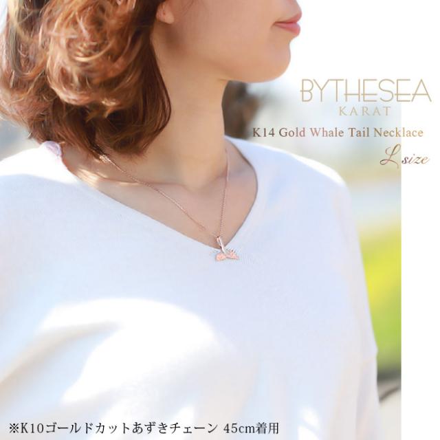 ゴールド ネックレス ハワイアンジュエリー ネックレス ホエールテール ピンクゴールド ネックレス Lサイズ 刻印 無料 誕生石入れ可 14K K14ピンクゴールド K10カットあずきチェーン太さ0.9mm ギフトラッピング可能 プレゼント クリスマス 【品番:CG-GP115R-228SDC4】