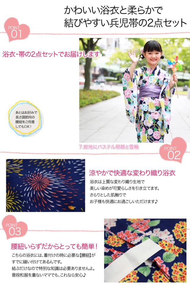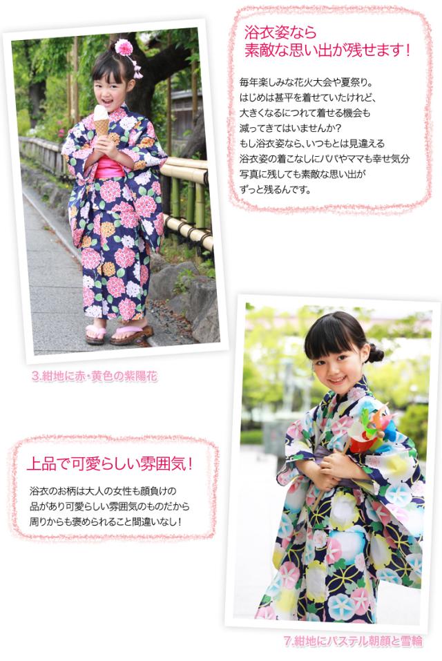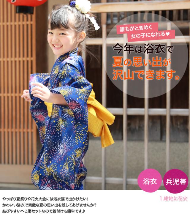 浴衣 子供 キッズ セット 選べる4柄「なでしこ」キッズ女の子浴衣2点セット 100cm 110cm 120cm 130cm 女の子 女児