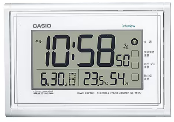 【送料無料】CASIO カシオ IDL-150NJ-7JF 電波掛け置き時計 生活環境おしらせクロック 大型液晶 夜見えライト