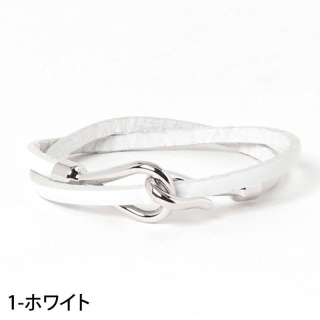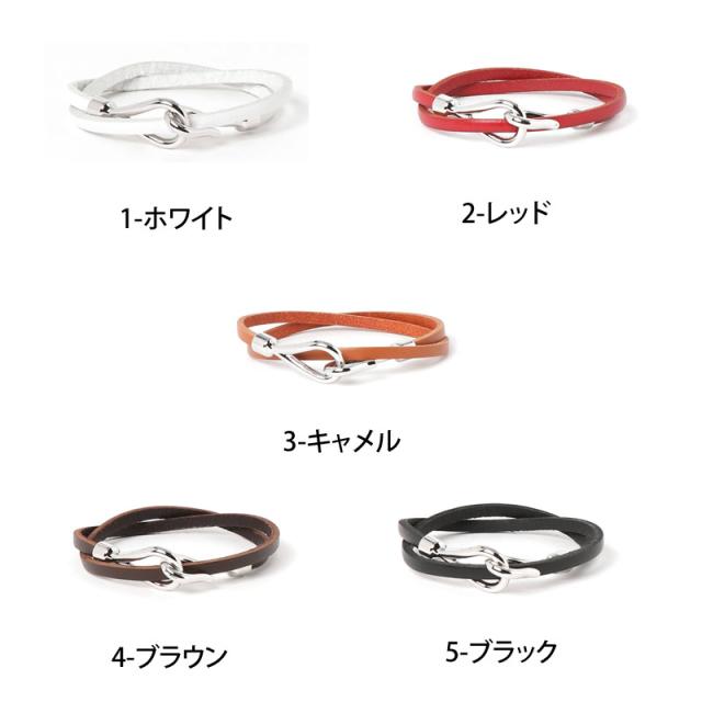 | “ジャンルを問わず使えるちょうどいいブレスレット” 細すぎずも太過ぎない帯で2重巻きにする事で手首とのバランスもよくなったレザーブレスレットです。 フック部分にボリュームと光沢がありカジュアルだけでなくキレイめにも映えるデザインとなっています。 ユニセックス(男女兼用)でペアやプレゼントとしても◎ ホワイト・レッド・キャメル・ブラウン・ブラック定番のブラックやブラウンに レッドやキャメルなどを重ね付けしアクセントを効かすのもオススメです。 | |