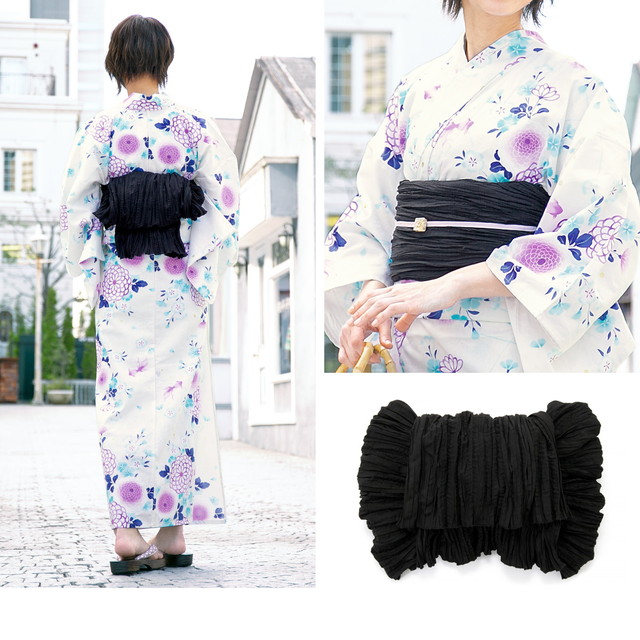 こちらの商品は、浴衣・帯・下駄の3点セットです。セット内容の一部変更や、それに伴う値引きは承っておりません。