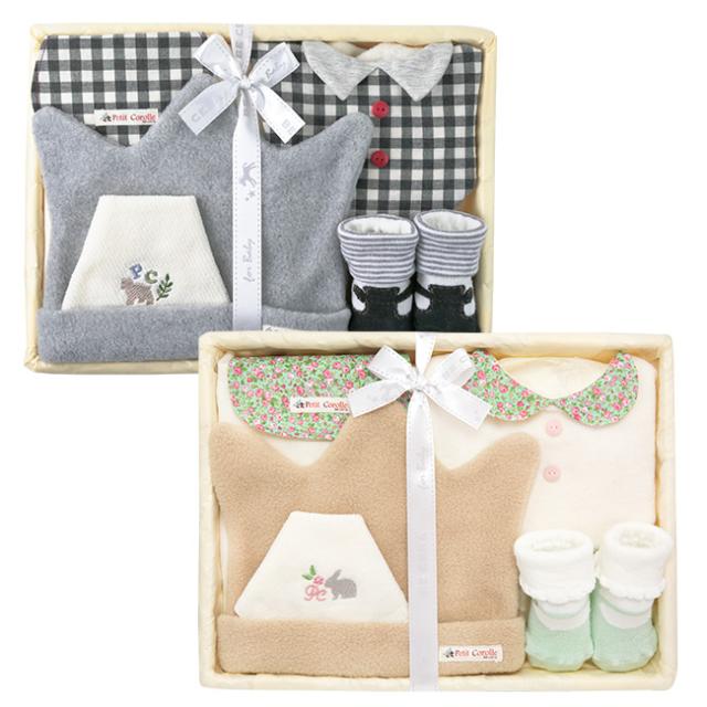 Petit Corolle プティコロール 王冠キャップセット カゴM-2(出産祝い ギフト 男の子 女の子 プレゼント かわいい おしゃれ 帽子 靴下 授乳 スタイ 汗とりパット) 即納