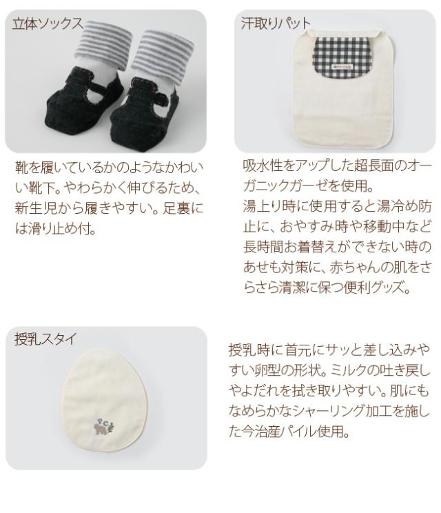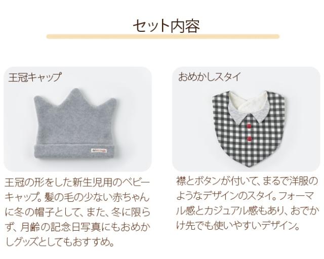 | セット内容 | 王冠キャップ、おめかしスタイ、立体ソックス、オーガニック汗取りパット、授乳スタイ |
