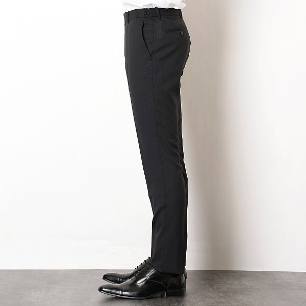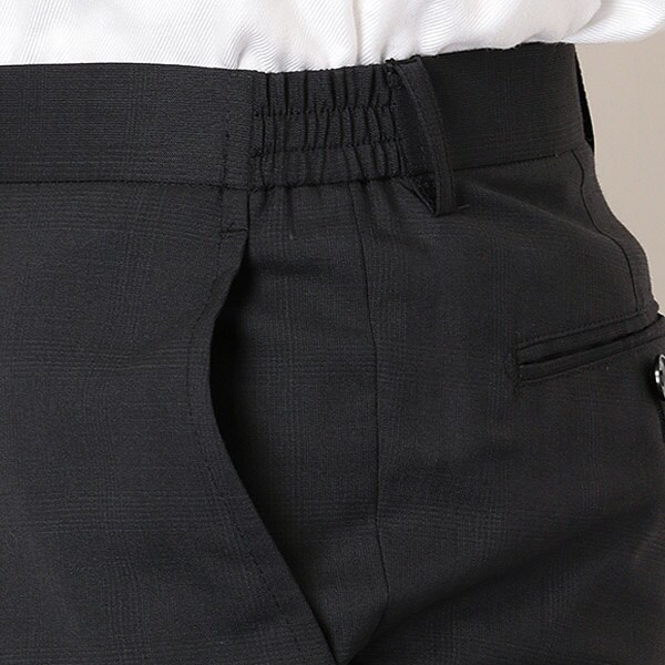 2釦シングル、ノータックウエストゴムのベスト付きスーツです。