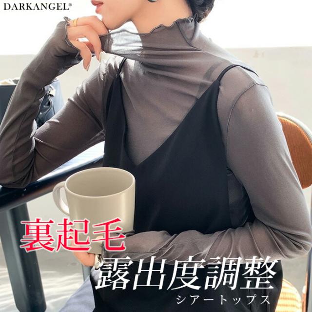 〈999円〜!クーポン利用で〉裏起毛 シアートップス カットソー ファンデーションインナー 30代 40代 50代 シースルー インナー 重ね着 チュールトップス レディース 長袖 ハイネック メロウデザイン 透け感 ダークエンジェル 送料無料 秋新作