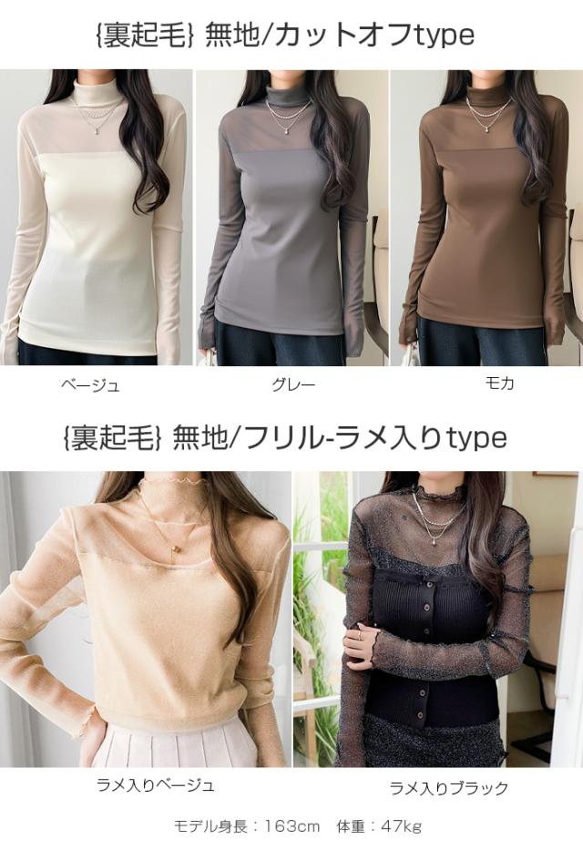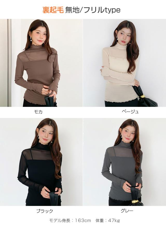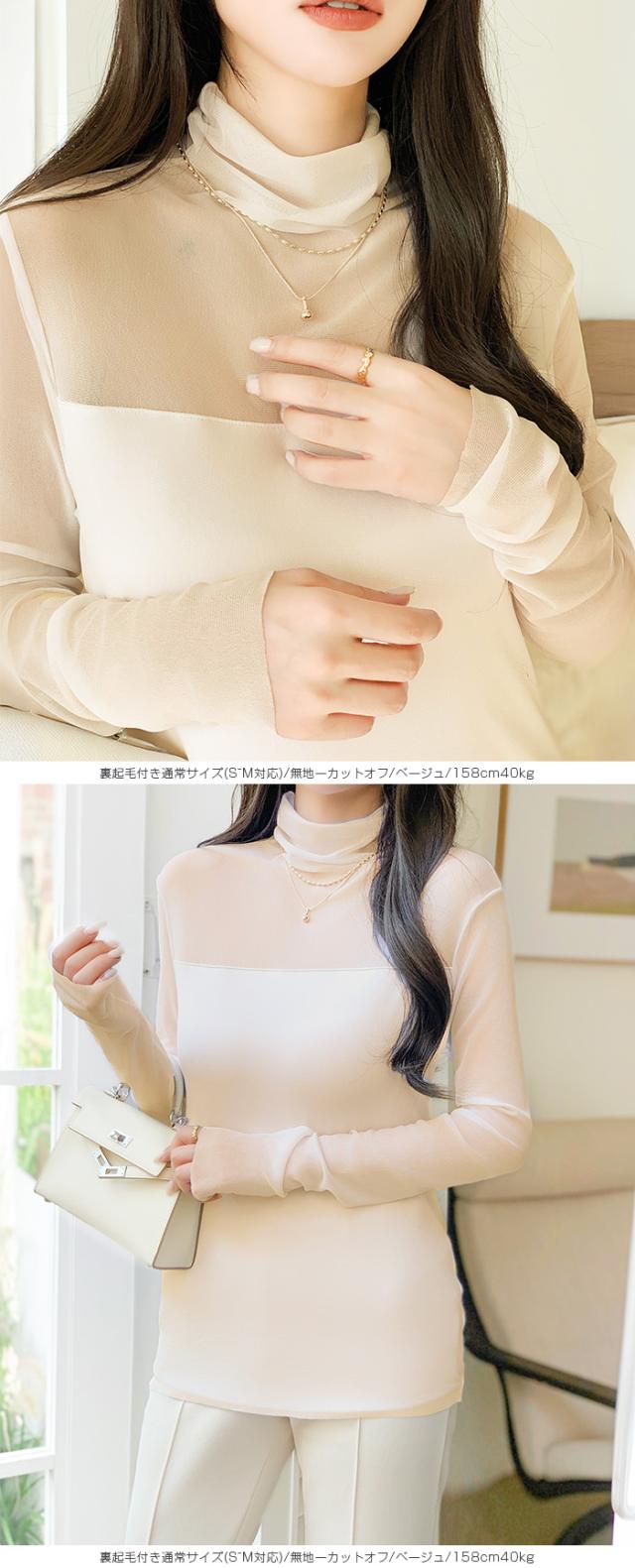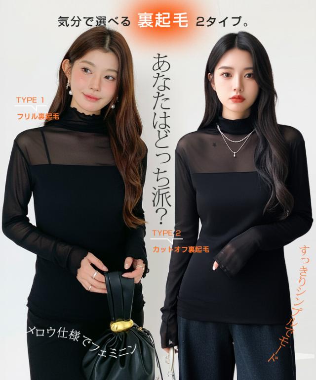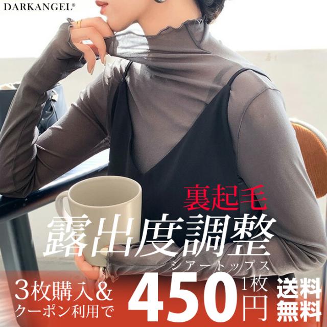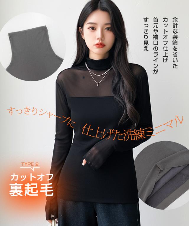 〈450円〜!クーポン利用で〉裏起毛 シアートップス カットソー ファンデーションインナー 30代 40代 50代 シースルー インナー 重ね着 UV 紫外線 チュールトップス レディース 長袖 ハイネック メロウデザイン 透け感 ダークエンジェル 送料無料 秋新作