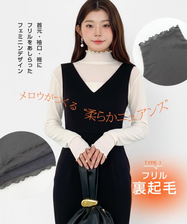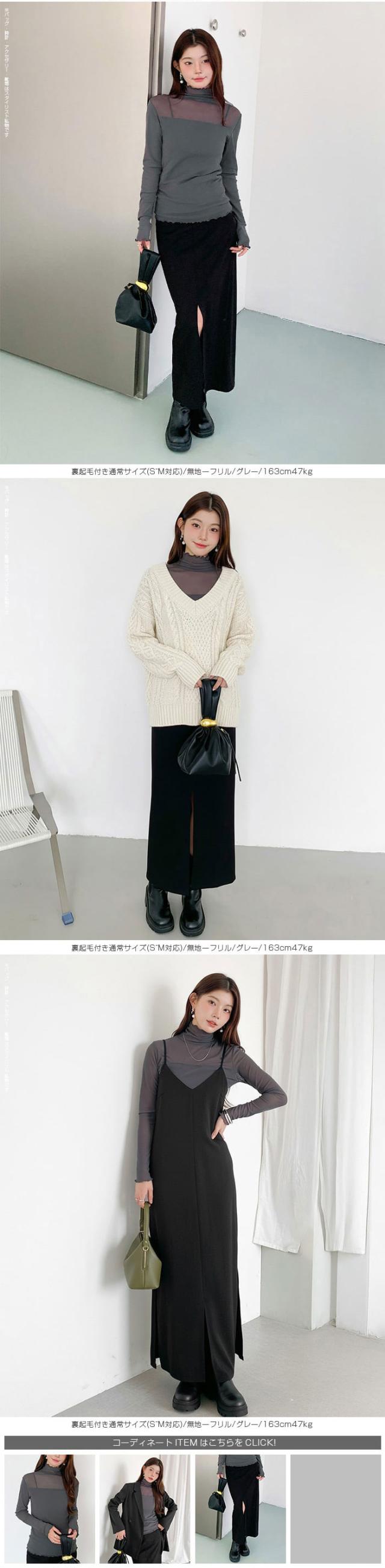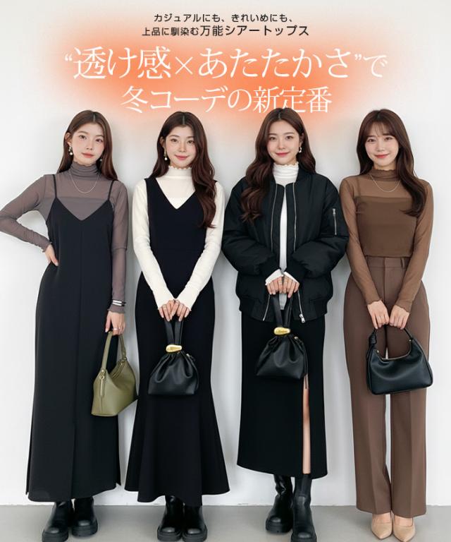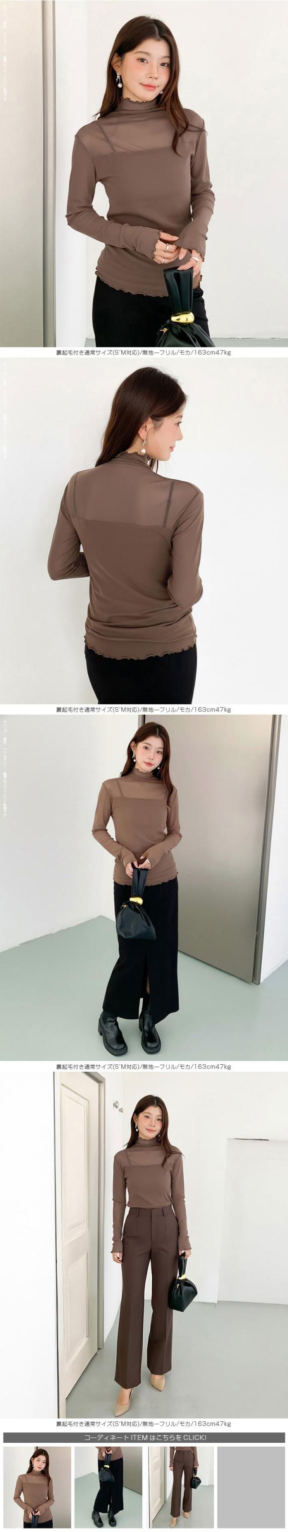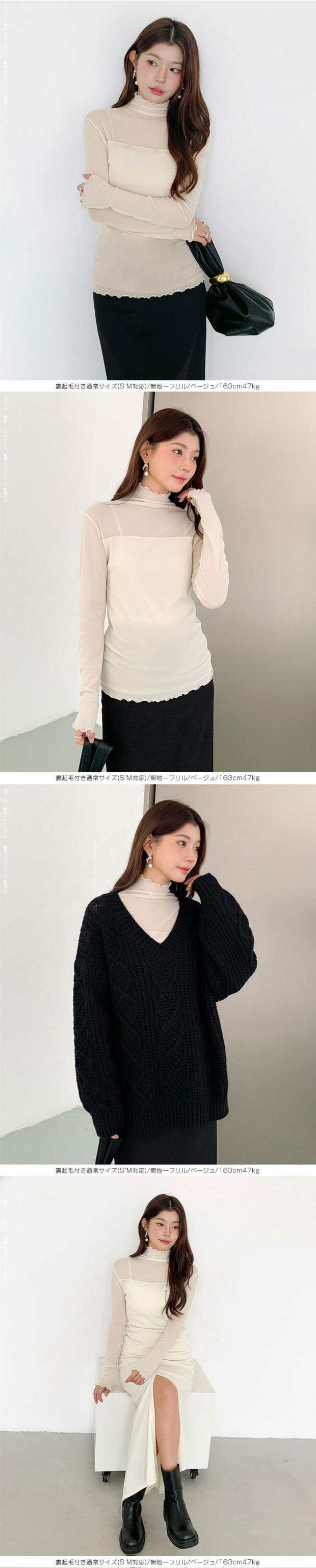 〈450円〜!クーポン利用で〉裏起毛 シアートップス カットソー ファンデーションインナー 30代 40代 50代 シースルー インナー 重ね着 UV 紫外線 チュールトップス レディース 長袖 ハイネック メロウデザイン 透け感 ダークエンジェル 送料無料 秋新作