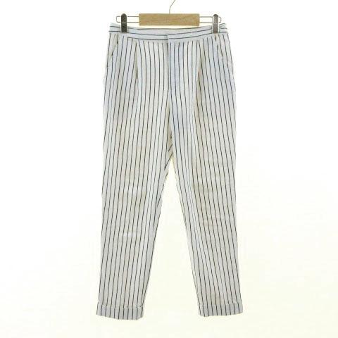 【中古】フリーズフレーズ FREE'S PHRASE パンツ テーパード リネン混 ストライプ オフ白 黒 ブラック M レディース