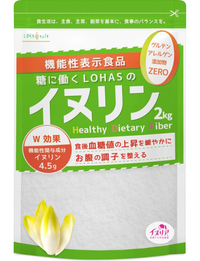イヌリン 2kg 機能性表示食品 【食後の血糖値が気になる方に】 チコリ由来 水溶性食物繊維 Non-GMO ロハスタイル LOHAStyle