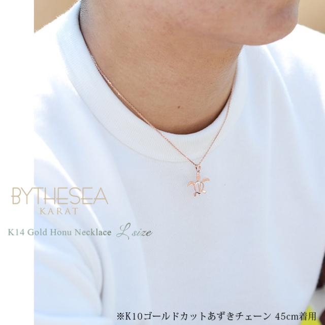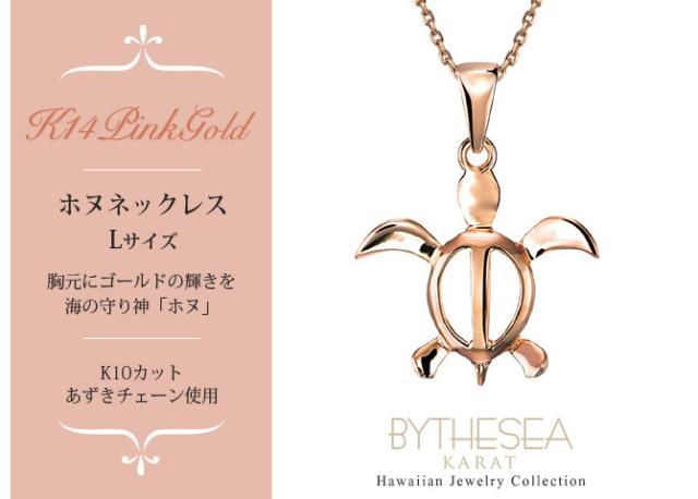 ゴールド ネックレス ハワイアンジュエリー ネックレス ホヌ ピンクゴールド ネックレス 幸せを運ぶ ホヌ Lサイズ 14K K14ピンクゴールド K10カットあずきチェーン太さ0.9mm ギフトラッピング可能 彼女 妻 女性 レディース プレゼント クリスマス 【品番:CG-GP117R-228SDC4】