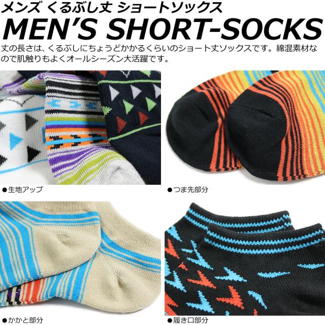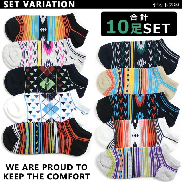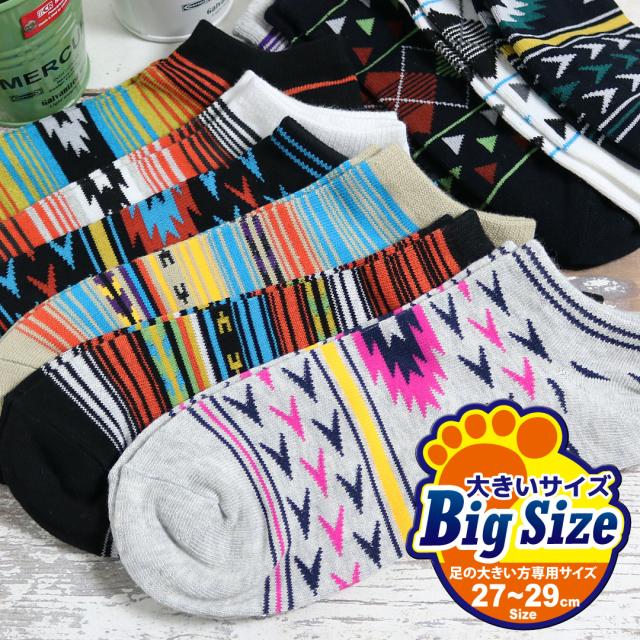 足の大きい方専用サイズ 靴下 メンズ 10足セット ネイティブデザイン くるぶし ショート ソックス 27-29cm対応サイズ 送料無料