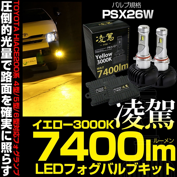 トヨタ ハイエース (200系 3/4/5/6型) PSX26W規格フォグランプ対応 LED 凌駕 L7400 フォグランプキット 7400lm イエロー 3000K PSX26W 35-C-1