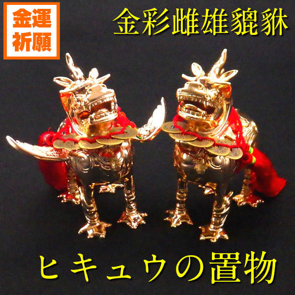 貔貅 ヒキュウ 金運 置物 金運アップグッズ 金運グッズ 風水 風水置物 風水インテリア 風水グッズ 銅製品 龍の置物 宝くじ 2025 (金彩雌雄貔貅ヒキュウ一対)
