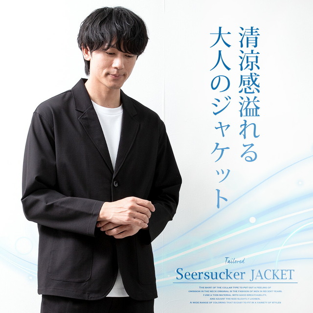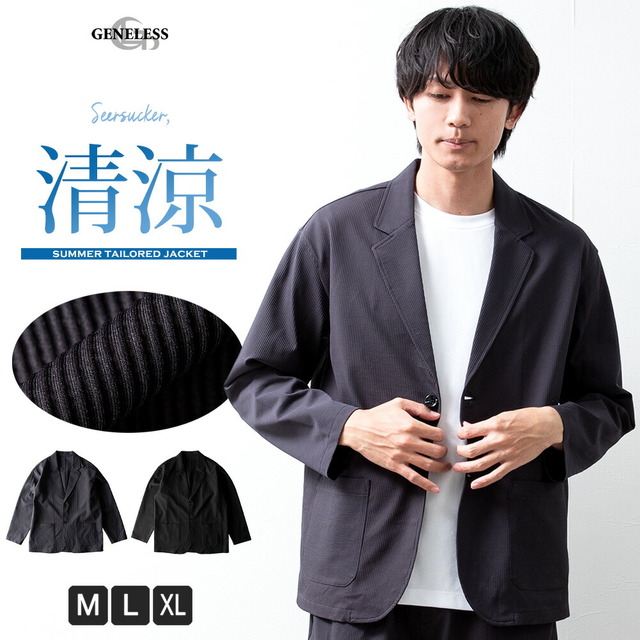 テーラードジャケット メンズ ネイビー 春夏 大きいサイズ アウター サマージャケット 夏 カジュアル シアサッカー お出かけ メンズファッション 無地 春 涼しい