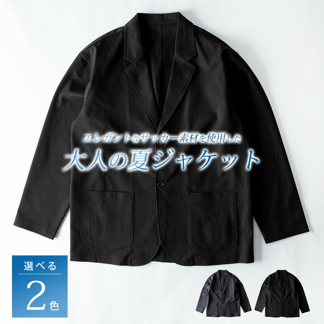 テーラードジャケット メンズ ネイビー 春夏 大きいサイズ アウター サマージャケット 夏 カジュアル シアサッカー お出かけ メンズファッション 無地 春 涼しい ストライプ ブルゾン おしゃれ 上品 軽量 羽織り アメカジ フード無 全2色