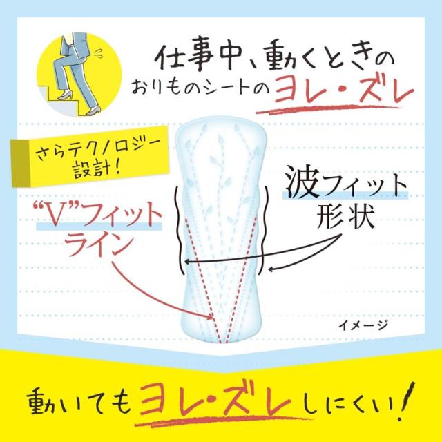 ●働く女性の1日の動きに合わせたヨレずれしにくい波型のシート形状とV字型のエンボス加工