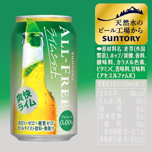 ●サントリー「オールフリー ライムショット」は、ライムの風味がきいた「ビールの味わい」が楽しめる爽快なノンアルコールビールテイスト飲料です。