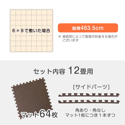ジョイントマット 12畳 大判 燃えにくい防炎タイプ ノンホル 64枚 サイドパーツ付 床暖房対応 PE ジョイント フロアマット 防音 防炎 断熱