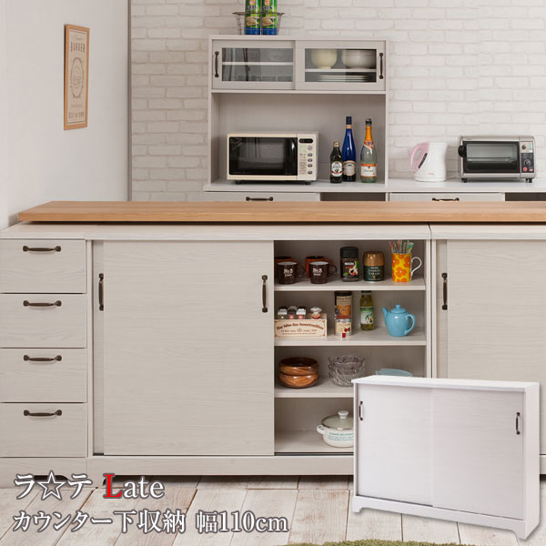 キャビネット 引き戸 カウンター下収納 キッチン収納 収納棚 幅110cm 北欧 フレンチカントリー Late ラテ ホワイト KT26-036WH-NS