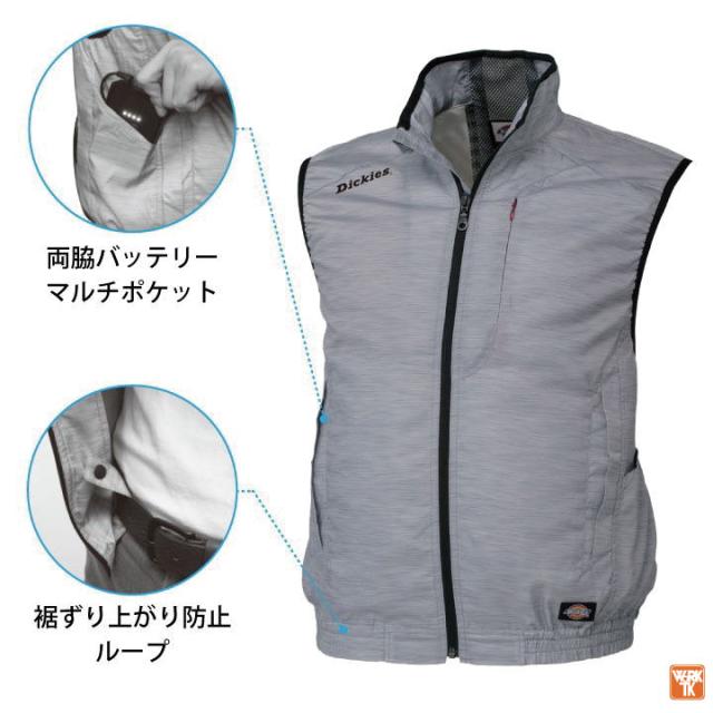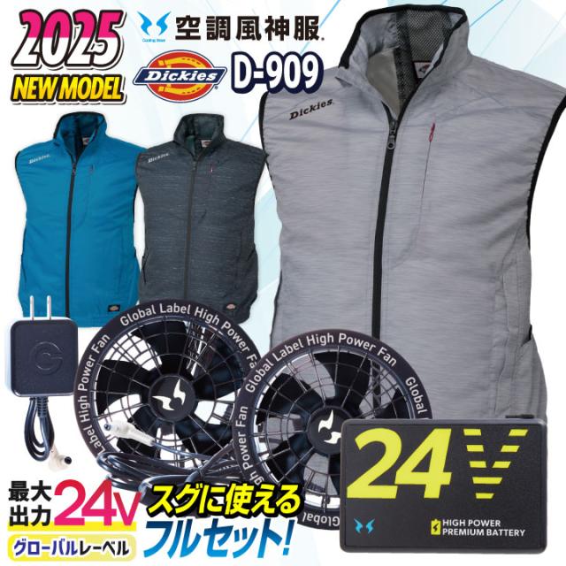 Dickies 空調風神服 D-909 ファン・バッテリーフルセット 最高出力24Vバッテリー グローバルレーベル 着用者に寄り添った機能性と、クールなデザインの空調ベスト!