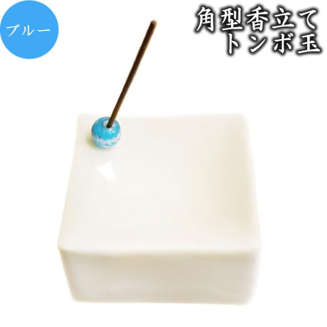 【 仏具 】 角型 トンボ玉 ブルー【 香立て 】白磁 香立て 縦置き ミニ香炉 供養 手元供養 香皿