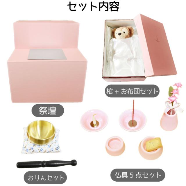 【 ペット祭壇 】お見送りセット ペット祭壇 おもいでのあかし仏具5点セット おりんセット(こりん) 棺お布団セット ペット葬儀