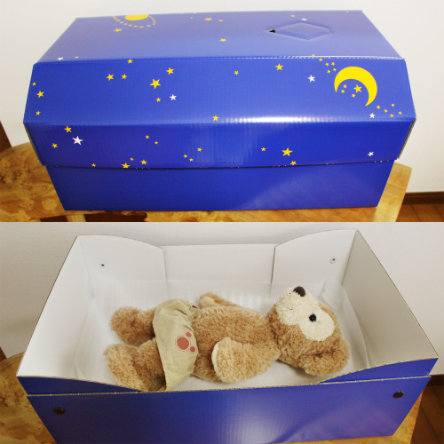 小型犬 中型犬に適したサイズのペット棺です。折りたたみタイプの棺なので、普段はスペースをとりません。いざという時に組み立ててご利用ください。