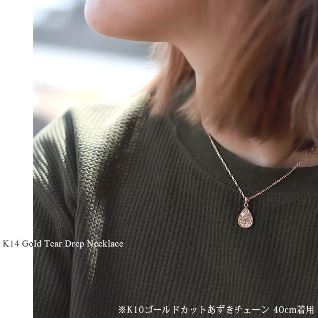 ゴールド ネックレス ハワイアンジュエリー ネックレス ゴールド ピンクゴールド ネックレス 刻印 無料 誕生石 ティアドロップ しずく型 雫 14K K14 K10カットあずきチェーン太さ0.9mm ギフトラッピング可能 プレゼント ホワイトデー 【品番:CG-GP119R-228SDC4】