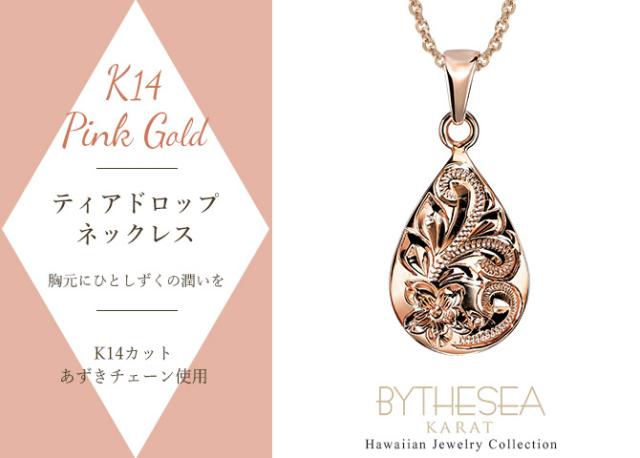 ゴールド ネックレス ハワイアンジュエリー ネックレス ゴールド ピンクゴールド ネックレス 刻印 無料 誕生石 ティアドロップ しずく型 雫 14k k14カットあずきチェーン太0.9mm ギフトラッピング可能 プレゼント ホワイトデー 卒業式 入学式 【品番:CG-GP119R-CH123】