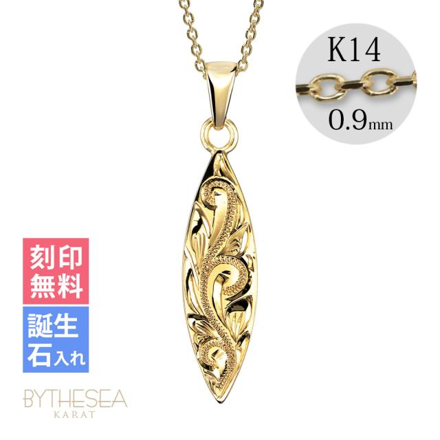 ゴールド ネックレス ハワイアンジュエリー ネックレス イエローゴールド ネックレス 刻印 無料 誕生石入れ可 サーフボード 14K K14イエローゴールド 14k k14カットあずきチェーン太0.9mm ギフトラッピング可能 プレゼント ホワイトデー 【品番:CG-GP121-CH123】