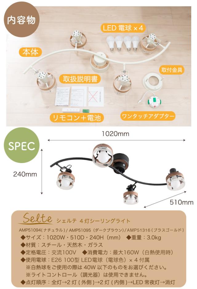 【Ampoule】 シーリングライト 照明 おしゃれ 4灯 バータイプ 天然木 デザインガラス リビング ダイニング 寝室 北欧 カフェ ナチュラル モダン クラシック 照明器具 天井照明 ウォールナット オーク ゴールド 真鍮 ホワイト 8畳 10畳 明るい 木目 バーライト selte シェルテ
