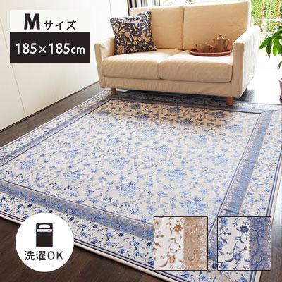 ラグ カーペット 北欧 絨毯 ザフラ 185×185cm 正方形 洗える おしゃれ 花柄 ブルー ベージュ 北欧 2畳 ラグマット センターラグ 絨毯 オールシーズン