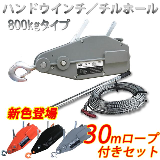 ハンドウィンチ 800kg チルホール ハンドウインチ 30m ワイヤーロープ レバーホイスト 携帯ウィンチ 荷締機 土木 建設 林業 伐採 牽引 重量物工具 送料無料