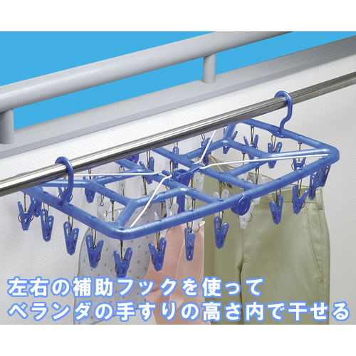 マンションのベランダなど、手すりの高さより低いところで洗濯物を干すのに適した小物干し洗濯ハンガー。