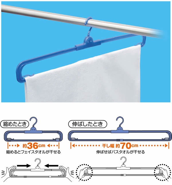 洗濯ハンガー タオルハンガー 伸縮式 バスタオルハンガー タオル バスタオル ハンガー 物干し 洗濯物 スライド式 洗濯用品 洗濯グッズ ランドリーグッズ ランドリー用品 おすすめ オススメ 人気 便利 便利グッズ 使いやすい クリップ付き 回転フック 鴨居 カーテンレール すっきり 干せる laundry bath towel 幅42 幅76 厚み1.5 高さ17 cm センチ 伸ばす 縮む 部屋干し 部屋干し 花粉対策 梅雨対策 浴室乾燥 4901065881251