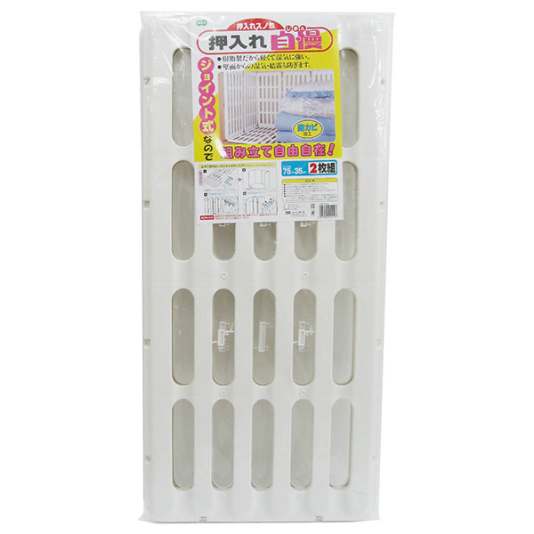 スノコ 簀の子 簀子 プラスチック製 樹脂製 長持ち 風通し 防カビ カビ対策 結露対策 直置きしない ふとん 布団 寝具 座布団 通気 連結 ジョイント 立てられる 立つ 日本製 国産 軽い 軽量 2枚組 クローゼット ウォークインクローゼット 納戸 WIC パントリー ホームセンター 乾燥 長さ 幅 奥行 75 35 センチ cm 白 ホワイト 長方形 防虫 耐久性 パレット 腐らない 除湿 乾燥 4901065915109