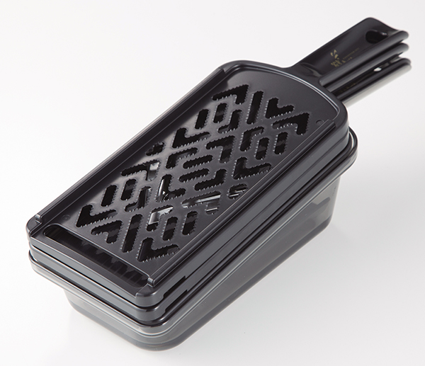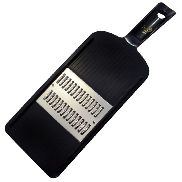 新機構の目立て設計表面の曲面形状が食材の削り出しにフィットするおろし器。