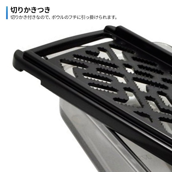 便利な受け付きおろした食材を受ける受け皿付きで調理に便利。