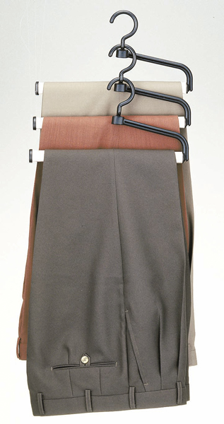 複数連結して重ね吊りできます。 1着分のスペースに複数のスラックスを収納できるので、省スペースで収納力UP。