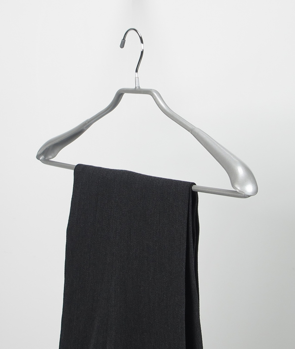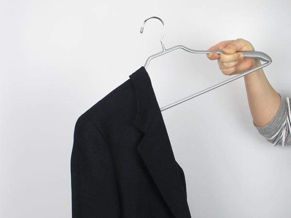 ジャケットを傷めにくい形状肩のラインにあわせた丸型形状なので、ジャケットを傷めにくくなっています。