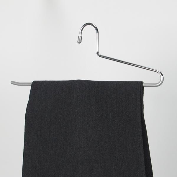 滑らないように表面特殊加工が施された金属製スラックスハンガー。2本組。